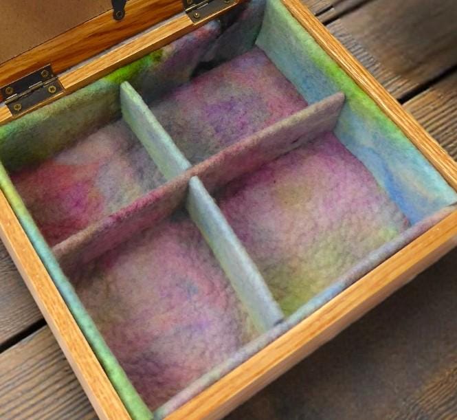 The partitions in the box are made from and-dyed felt and can be removed.