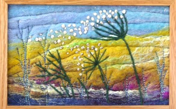 The picture is a unique artwork, 15cm x 9.5cm, with machine embroidery to add texture.