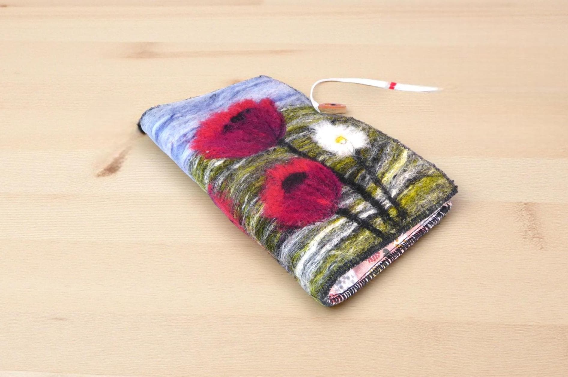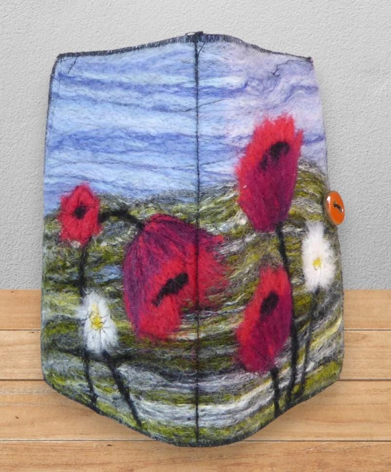 I design and make the picture using needle felting techniques. Some of the fibres have been dyed by me.