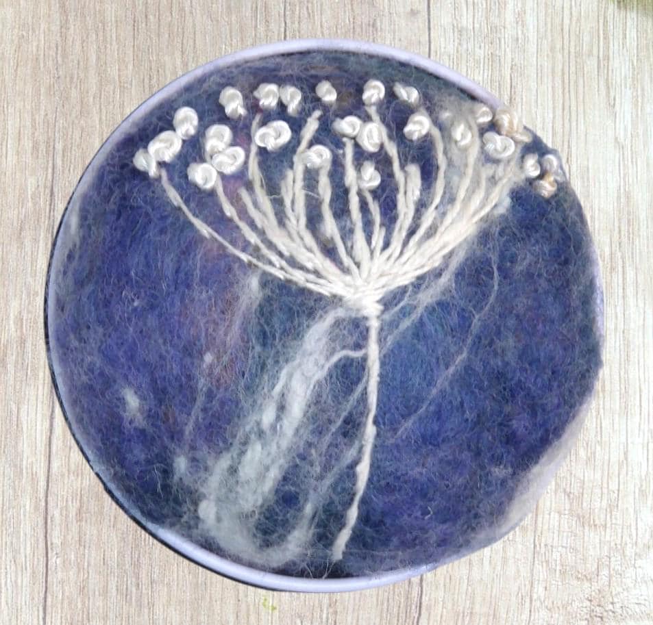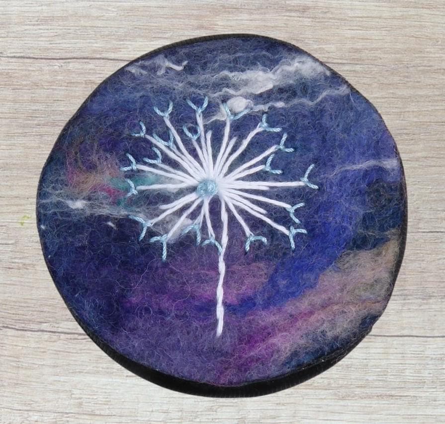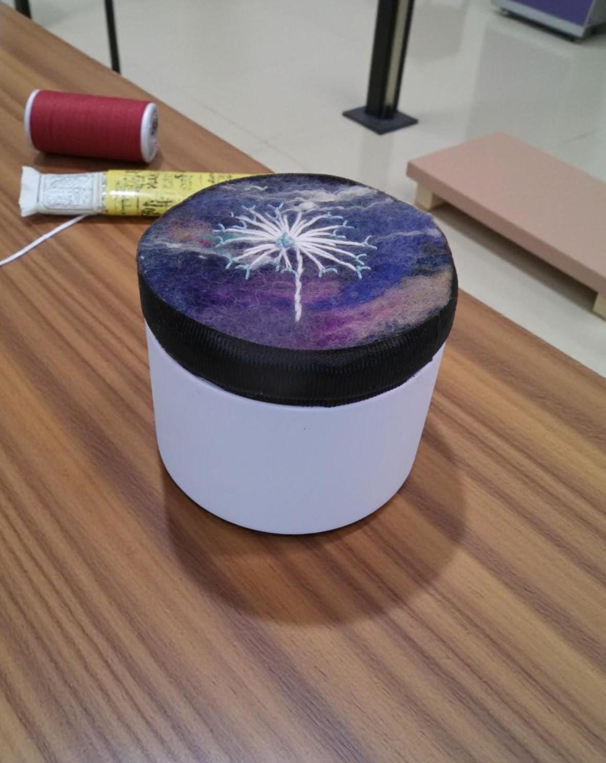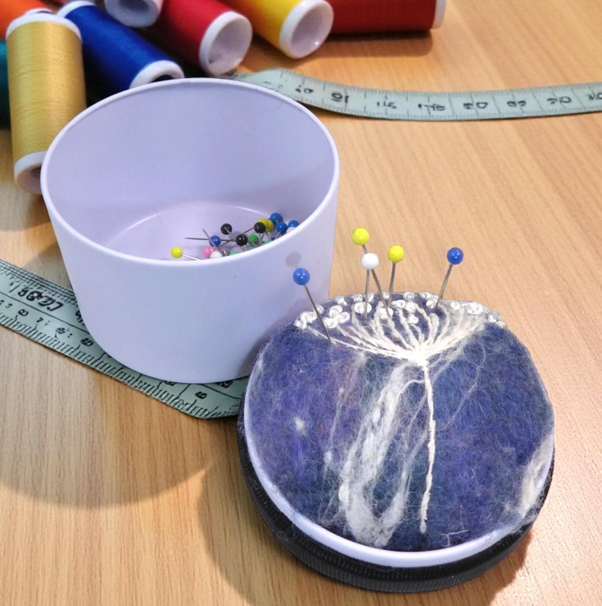 With the lid on, you have a tin for your pins with a felted design on the lid.