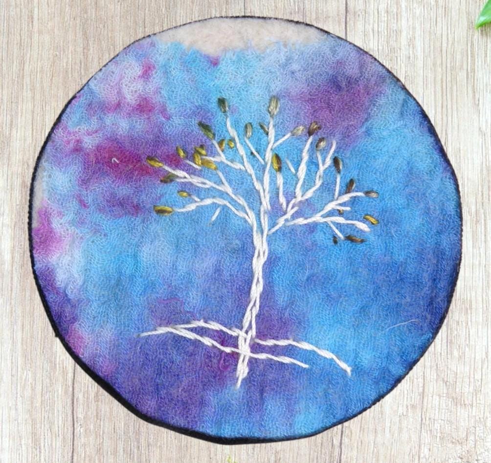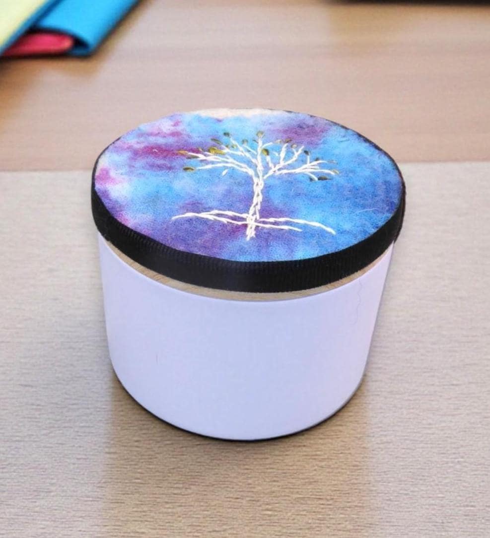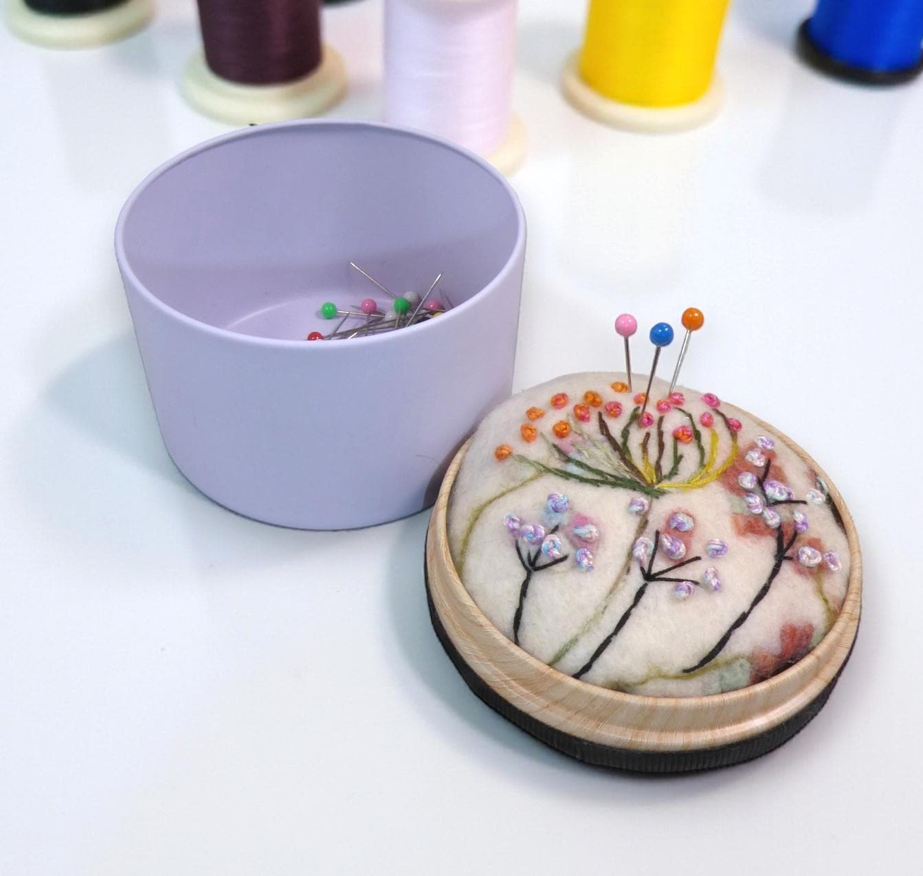 With the lid on, you have a tin for your pins with a felted design on the lid.