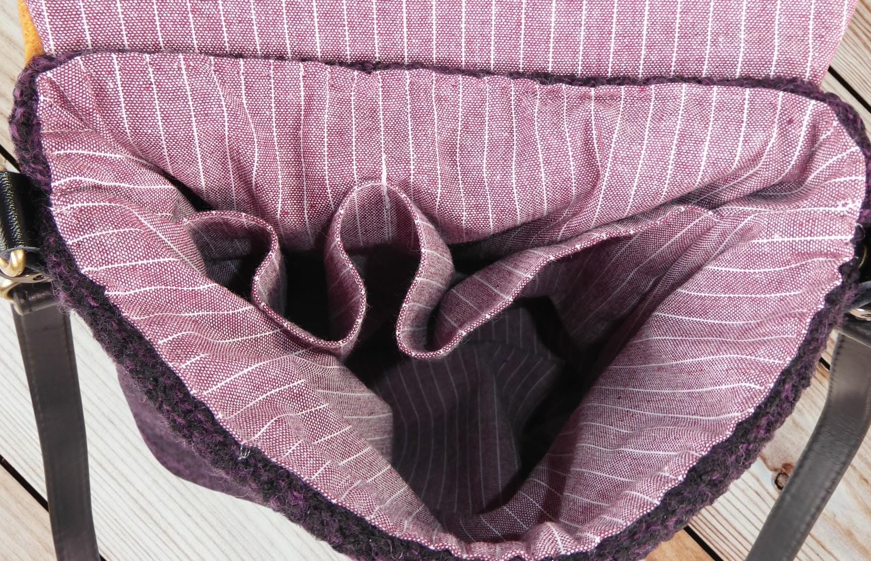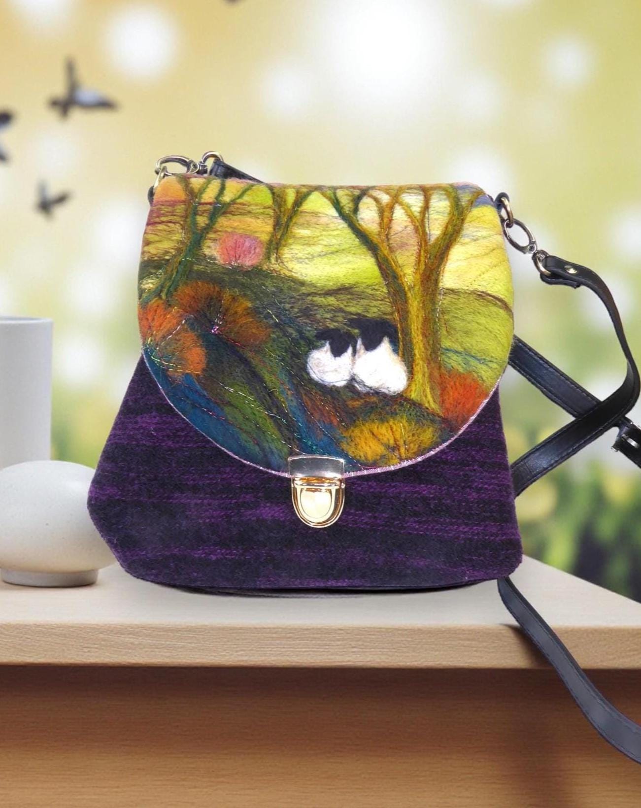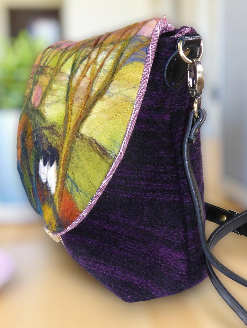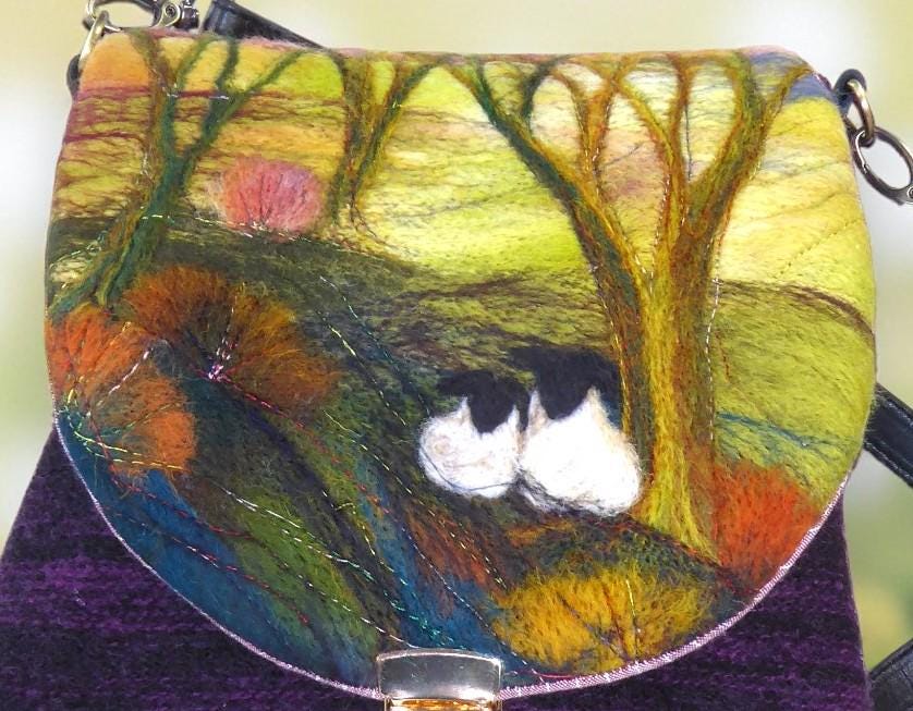 The bag has a flap onto which I have needle-felted two sheep. I have added embroidery to give some added definition.