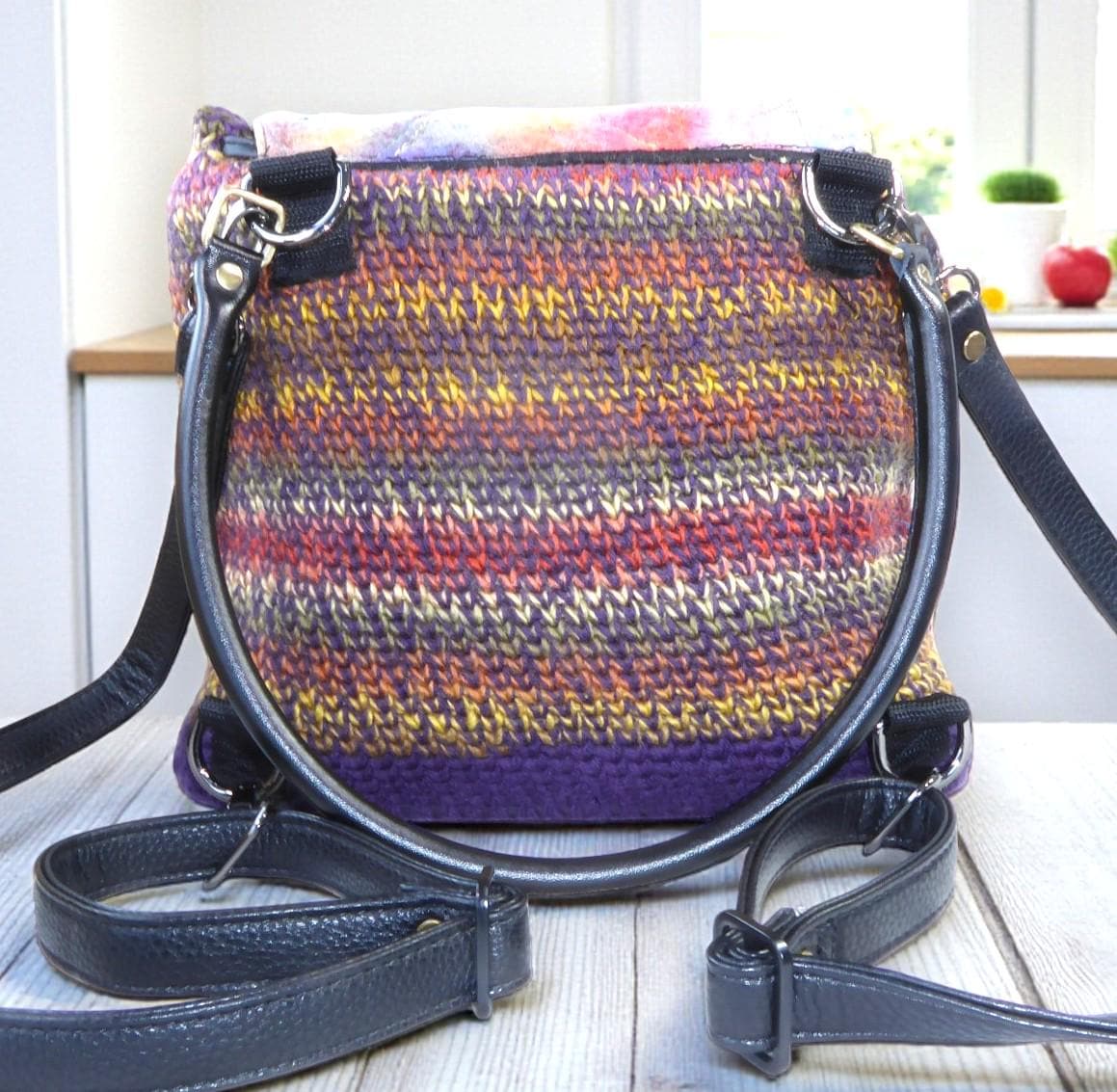 The body is crocheted cotton with a base and feet to protect the back-pack when you put it down.