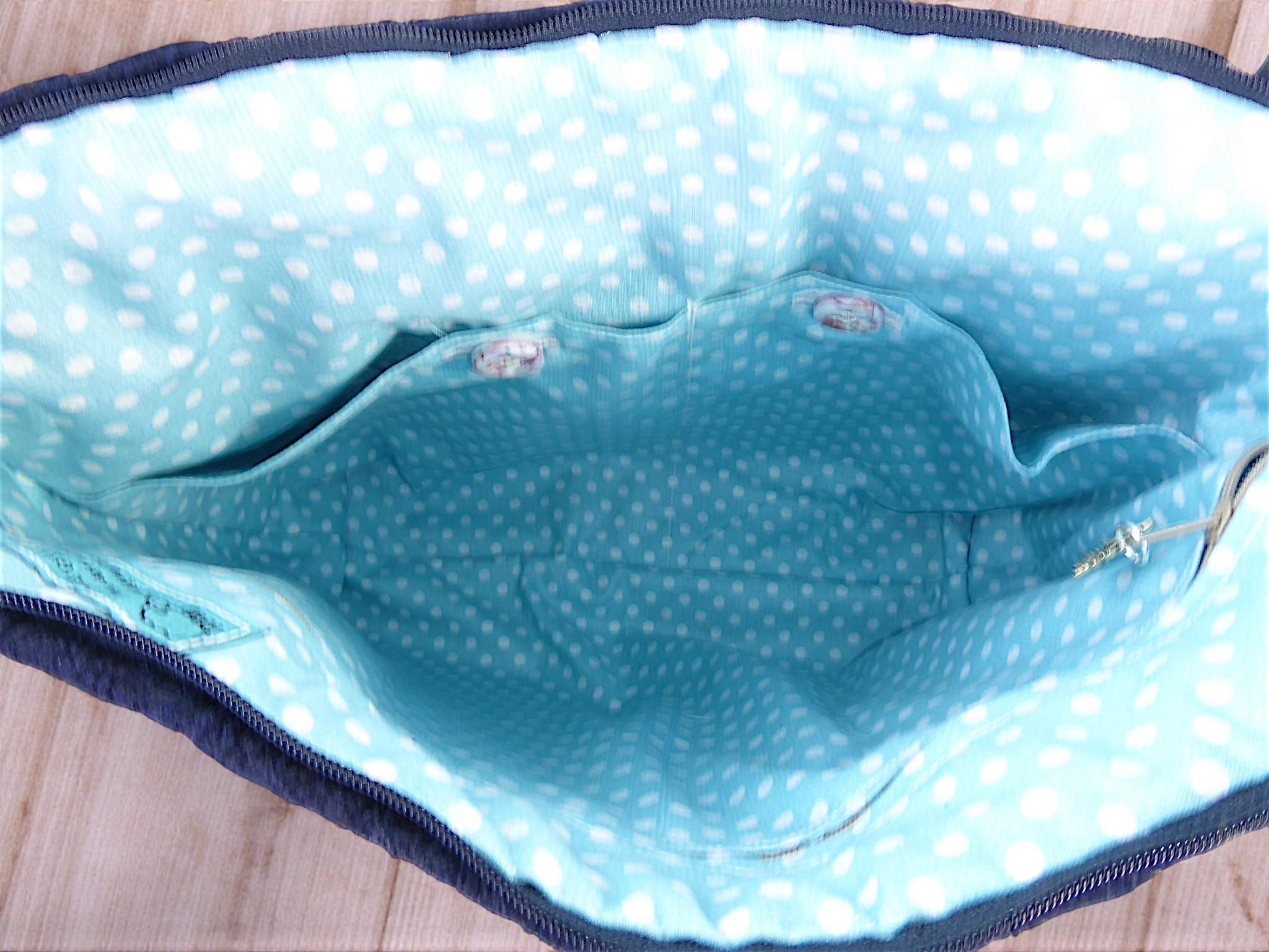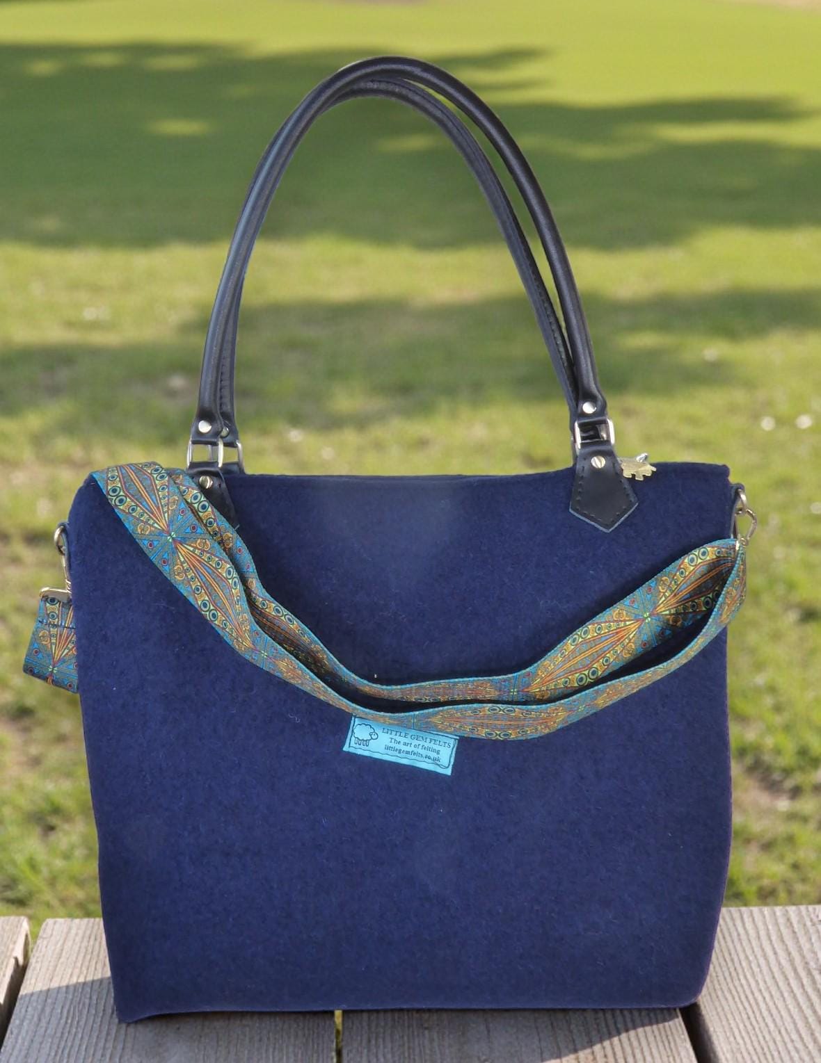 It has a zip top with a sheep charm and the handles are made from leather. It also has a wide, detachable strap which allows you to carry the bag across your body.