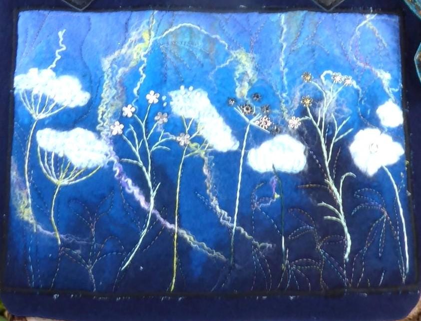 I designed and made the picture using wet-felting techniques. Many of the fibres have been dyed by me.