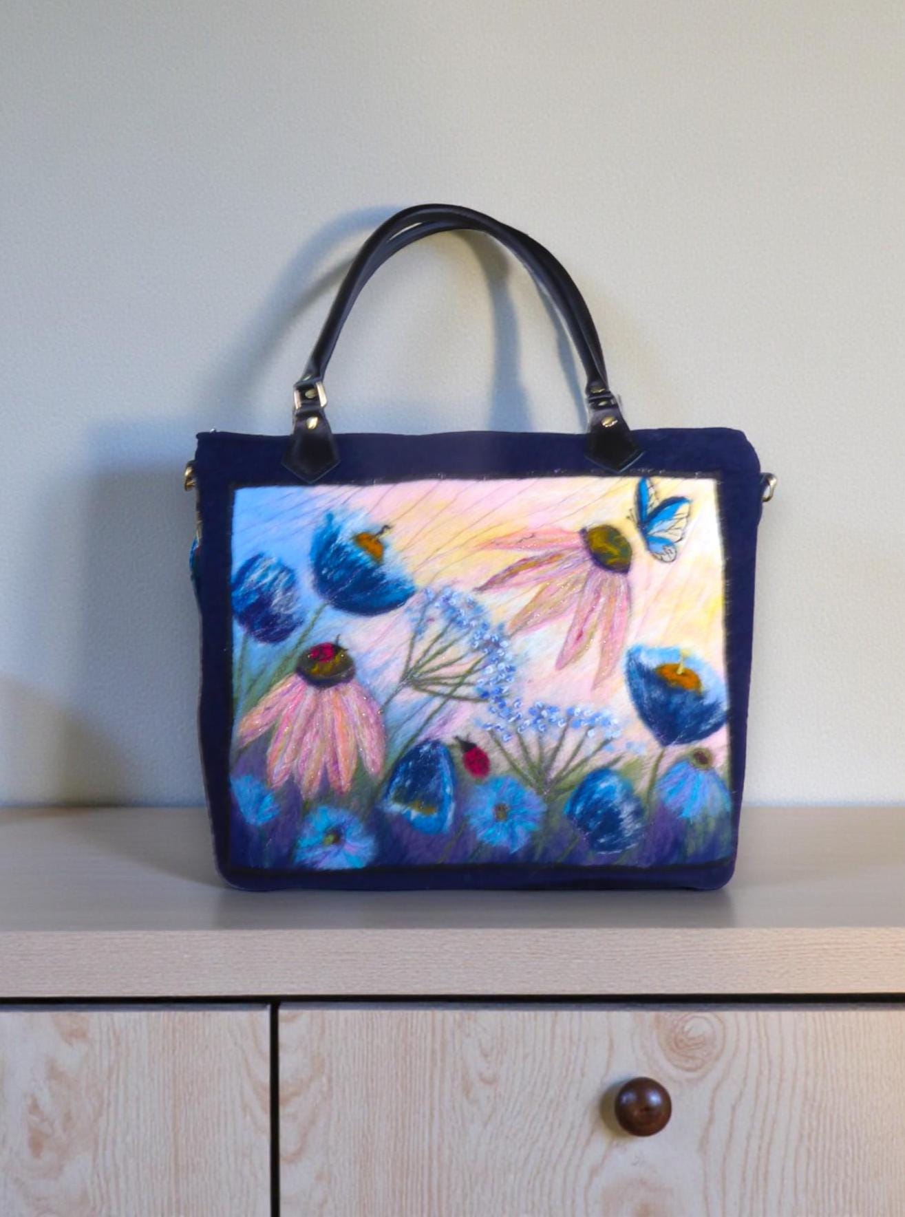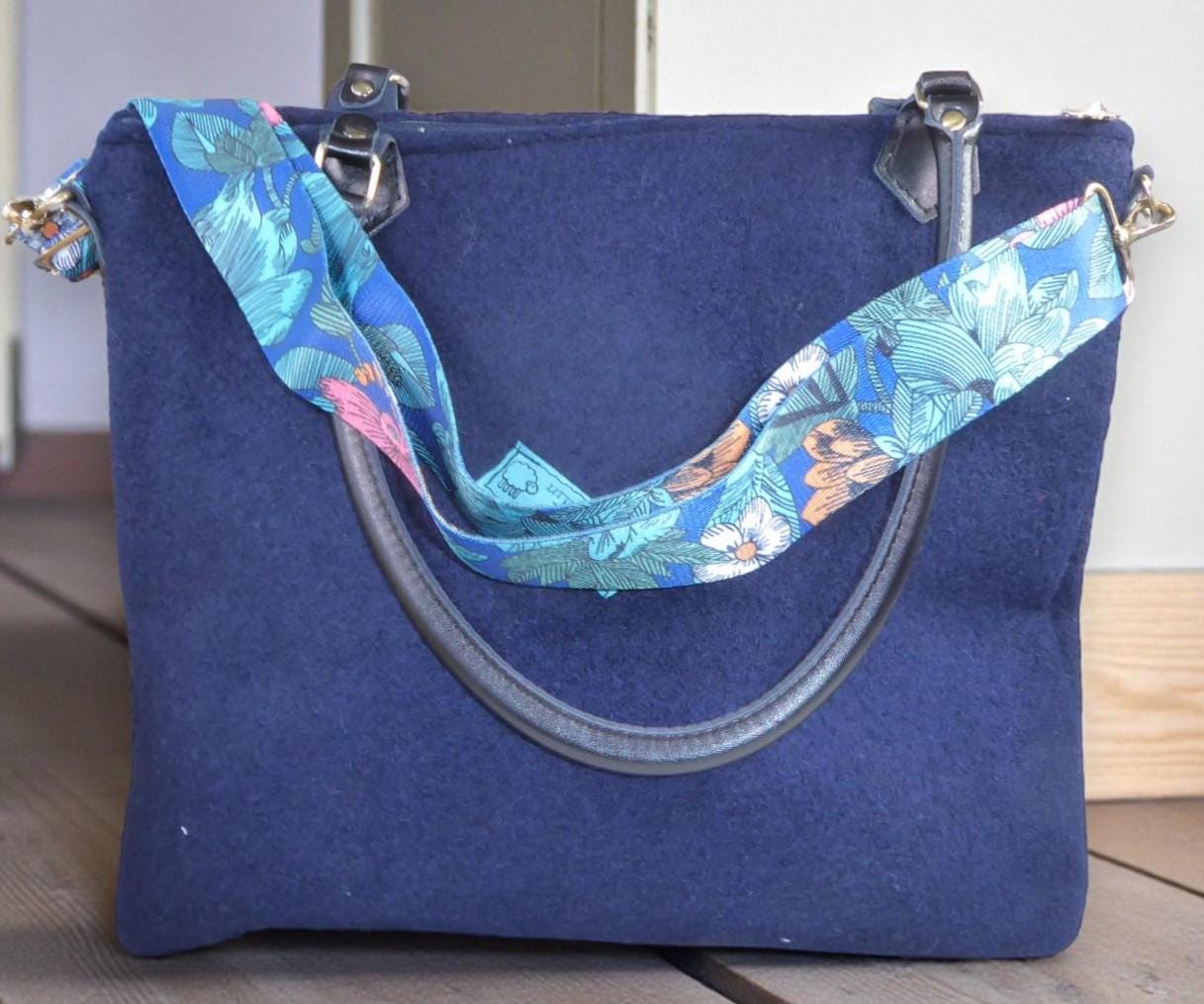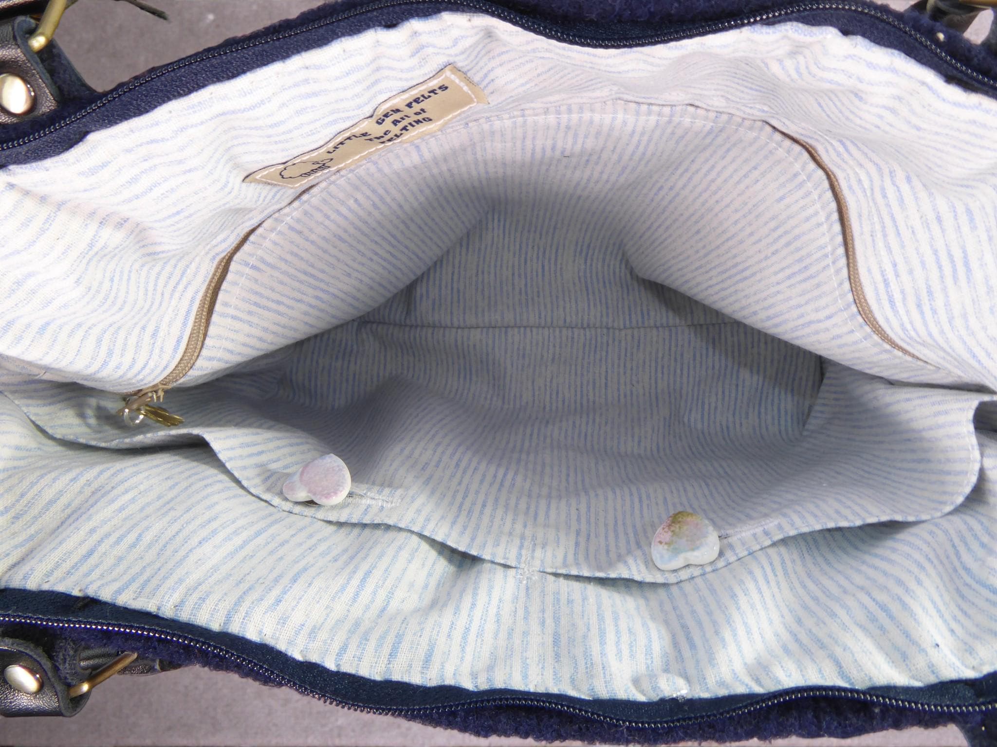 It has a zip top with a sheep charm and the handles are made from leather. It also has a wide, detachable strap which allows you to carry the bag across your body.