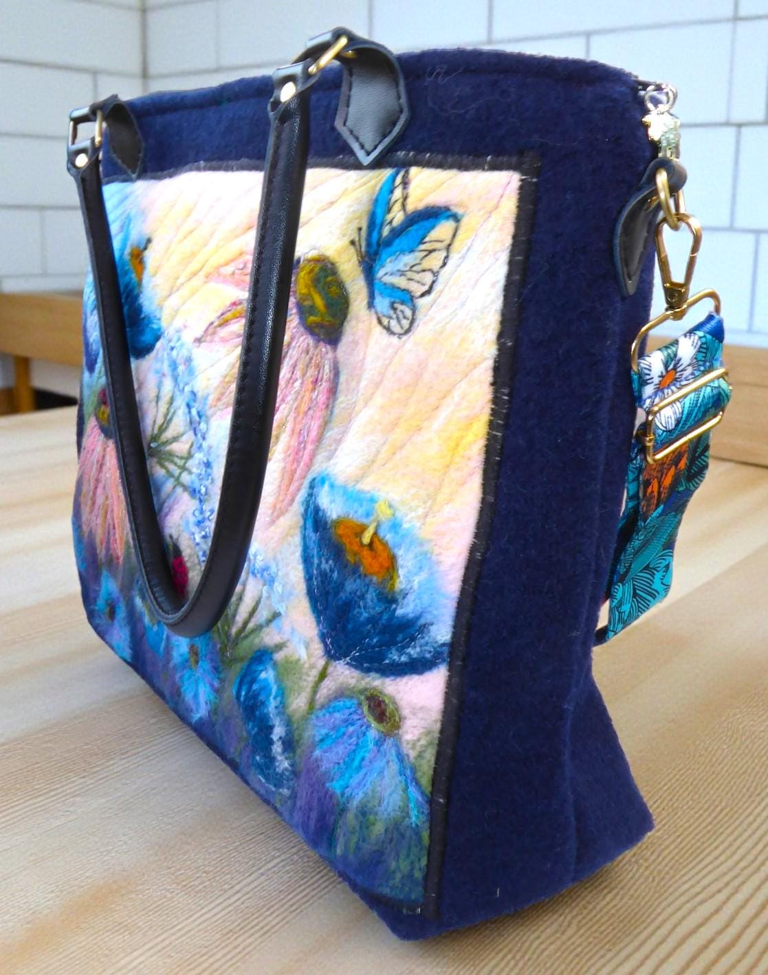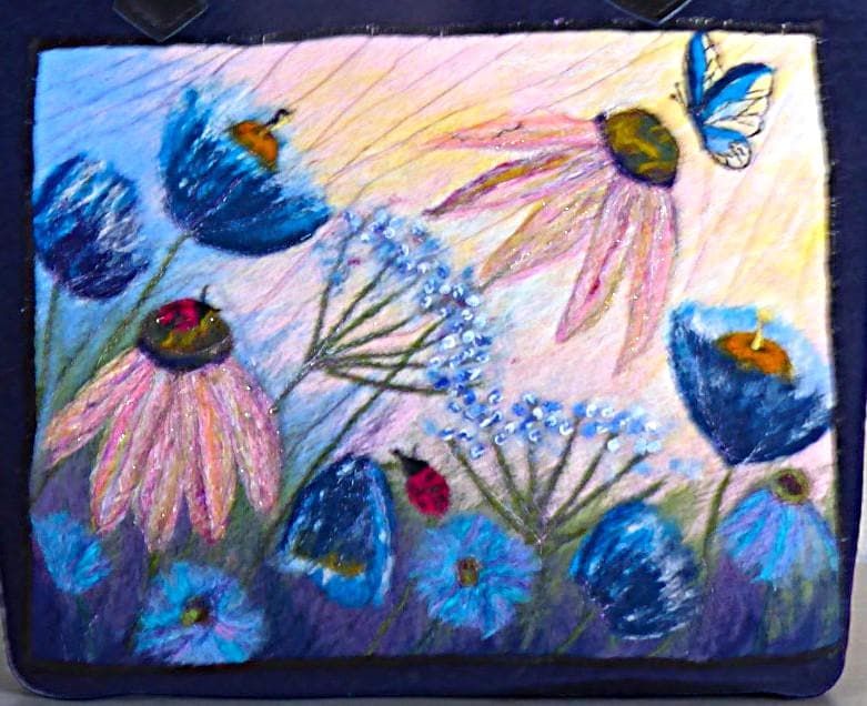I designed and made the picture using wet-felting techniques. Many of the fibres have been dyed by me.