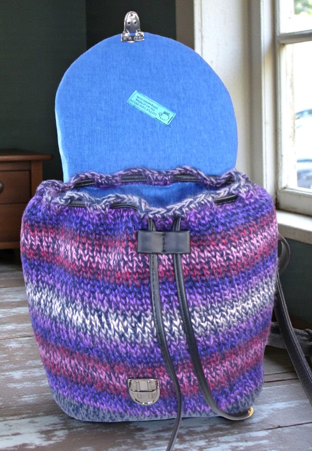 The body is crocheted cotton with a base and feet to protect the back-pack when you put it down.