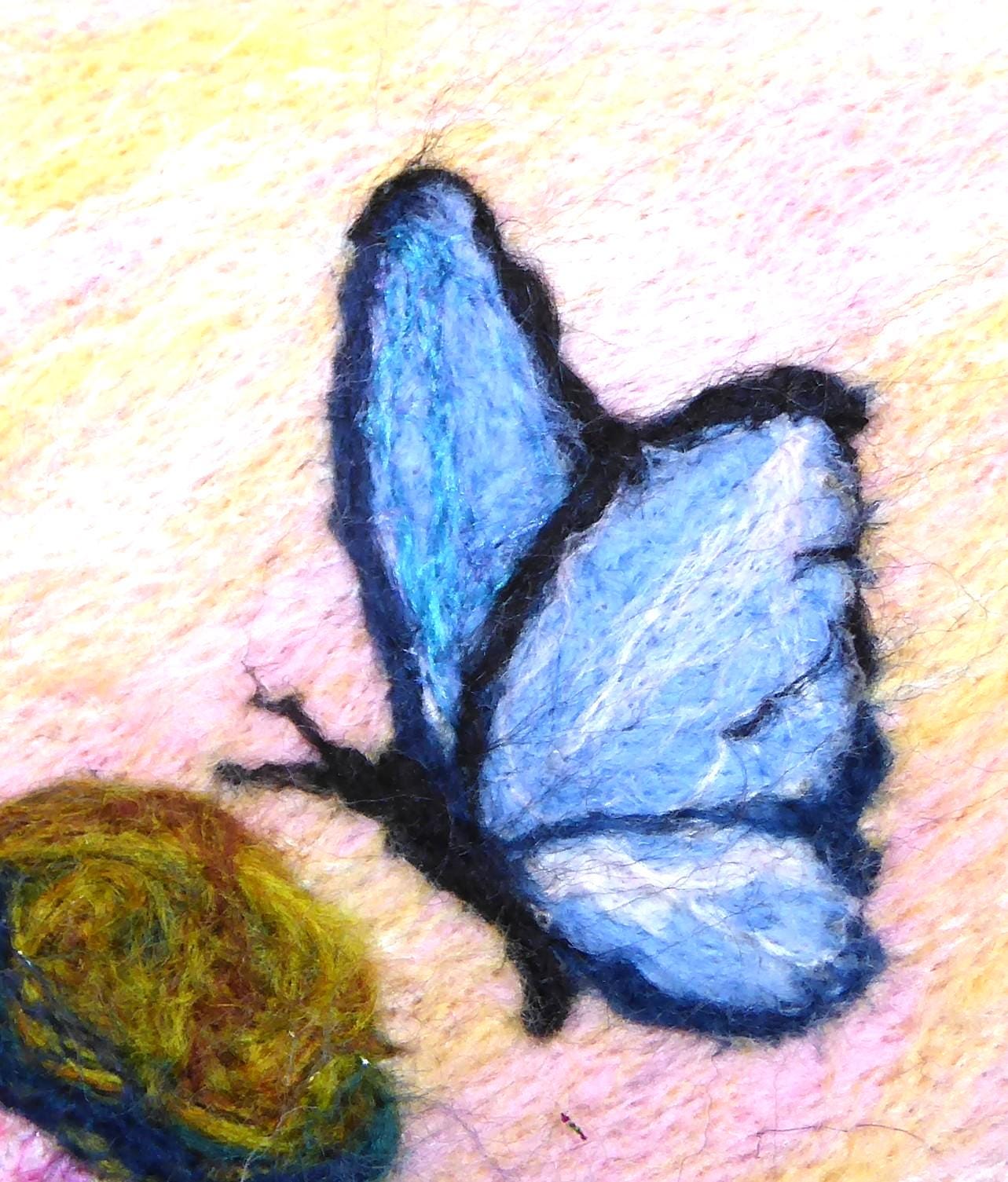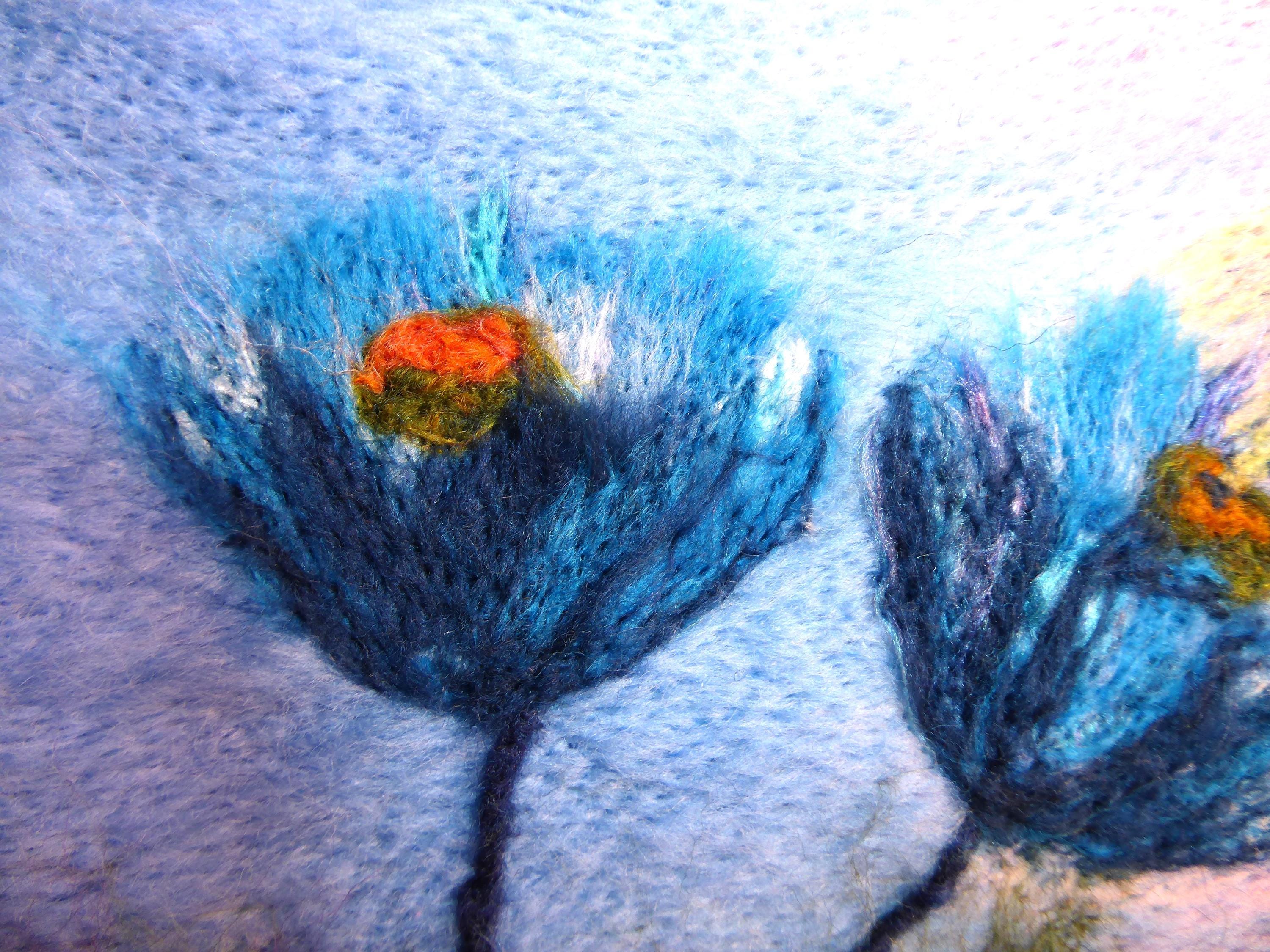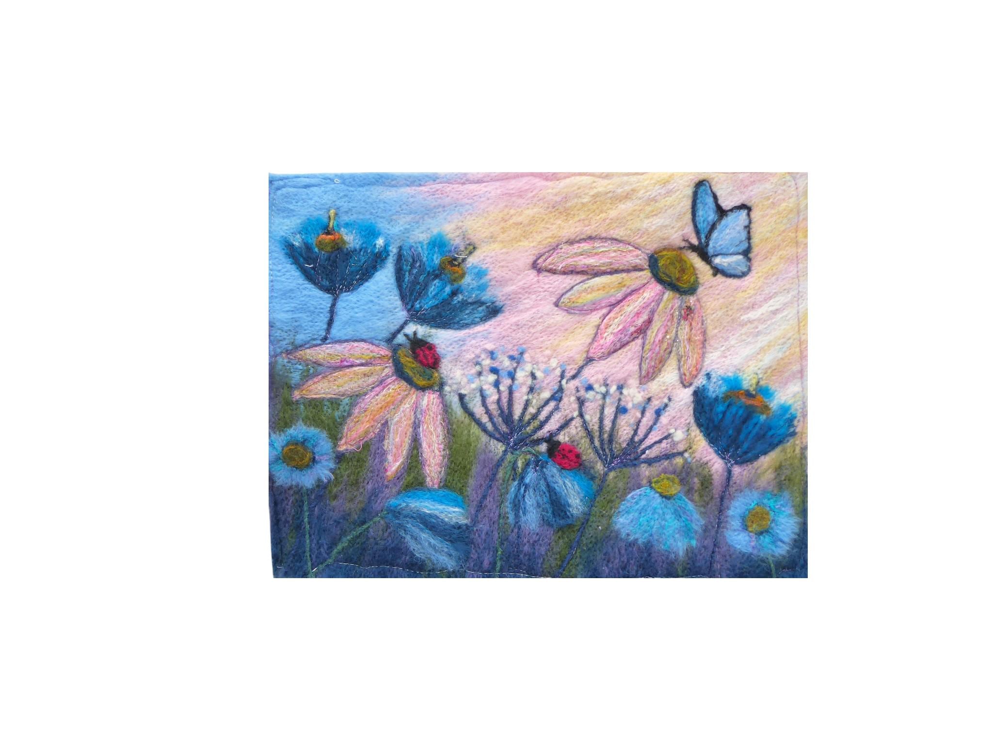 The picture is made using needle felting techniques. All the fibres are ready blended (with a couple of exceptions).