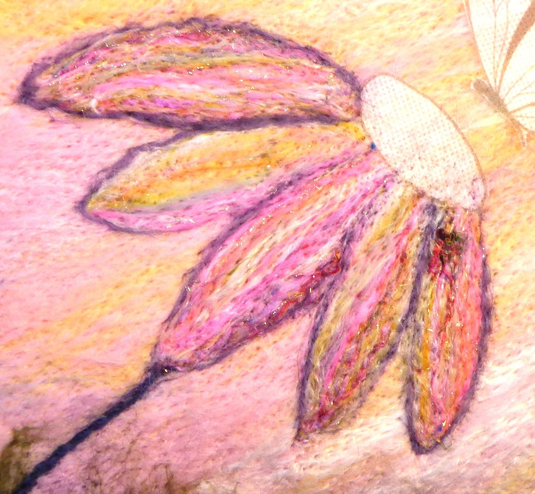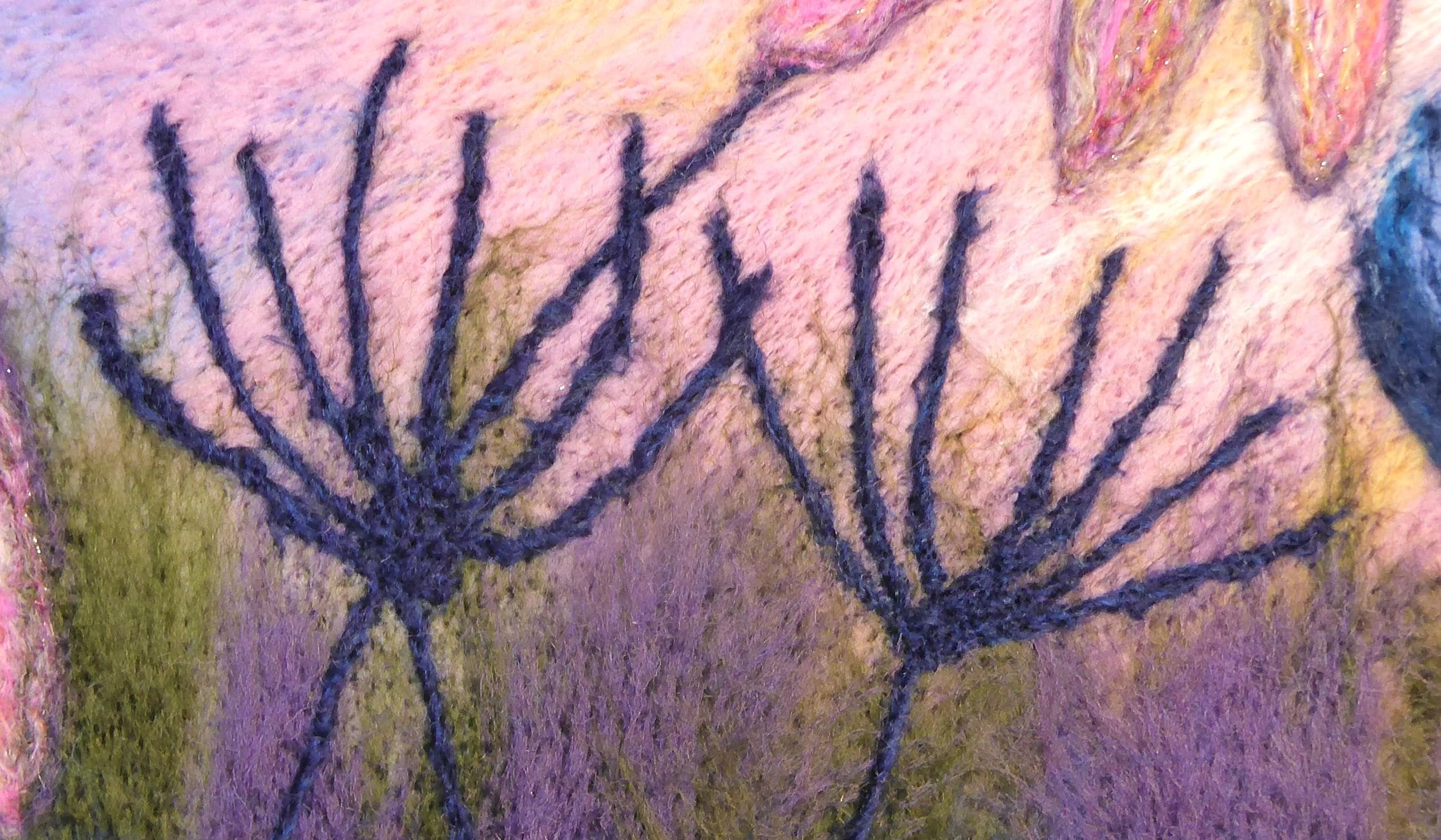 When all the fibres have been worked in you could do some free machine embroidery on it to highlight areas, or hand embroidery or even some bead-work, it all adds detail. But if you don't want to add anything it looks lovely just as it is.