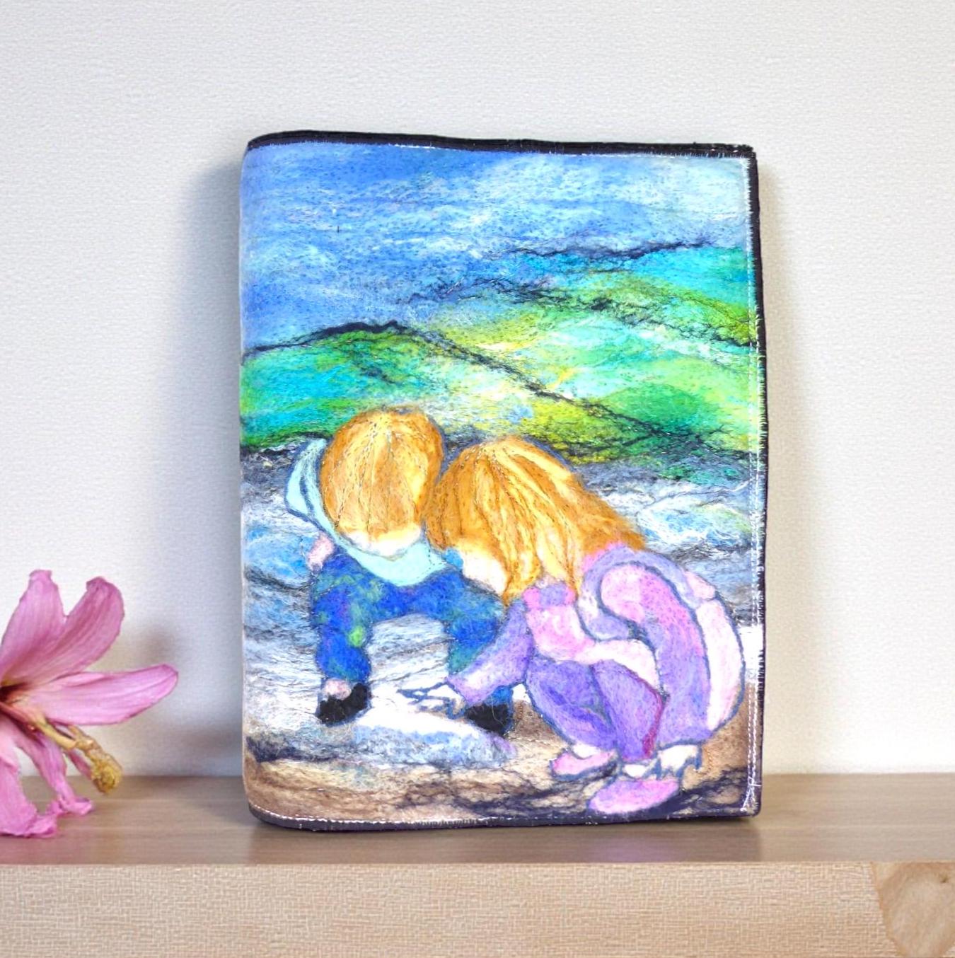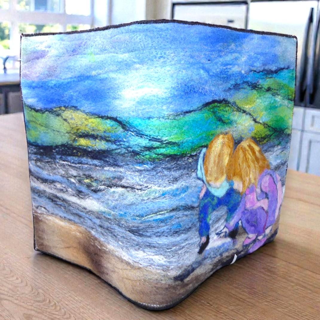 I have needle-felted a picture of two children searching for shells on the beach.