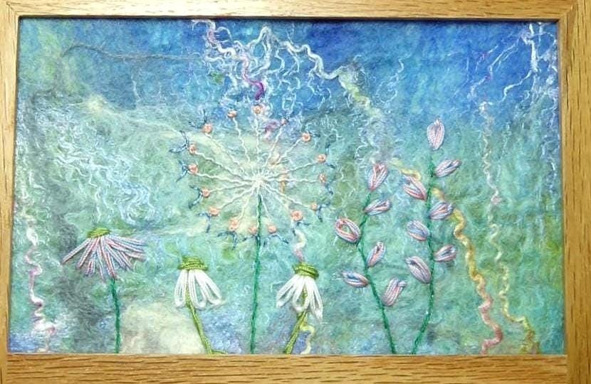The picture is a unique artwork, 15cm x 9.5cm, with machine embroidery to add texture.