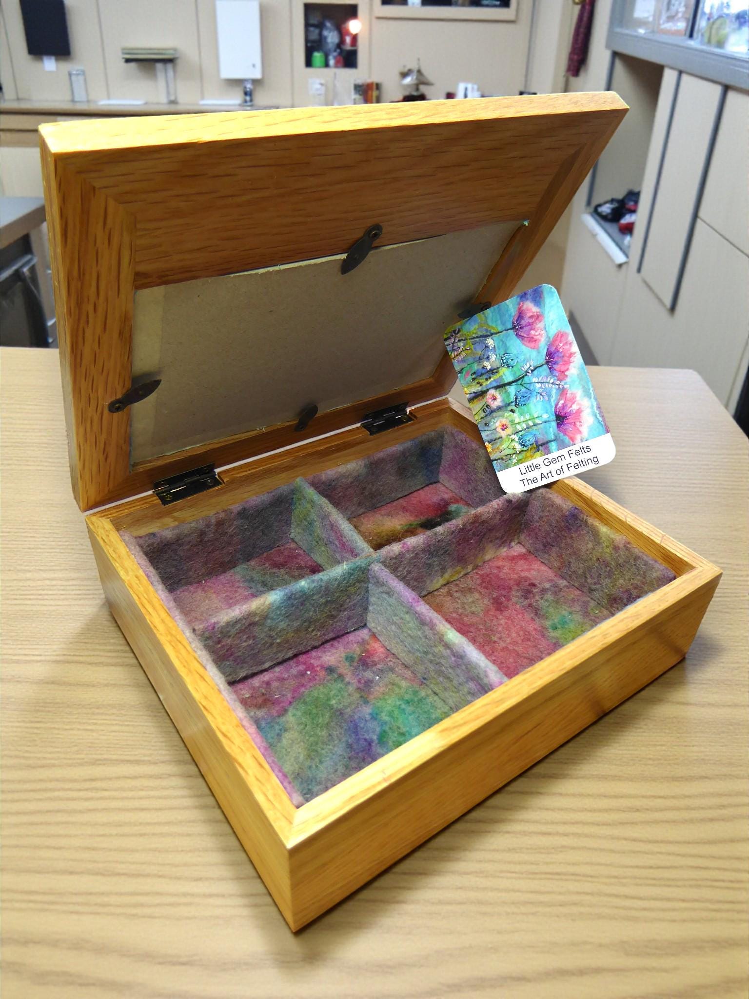 The inlaid partitions are made using hand-dyed felt and can be removed.