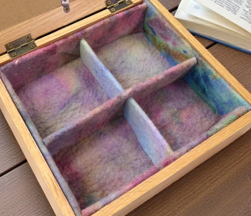 The inlaid partitions are made using hand-dyed felt and can be removed.