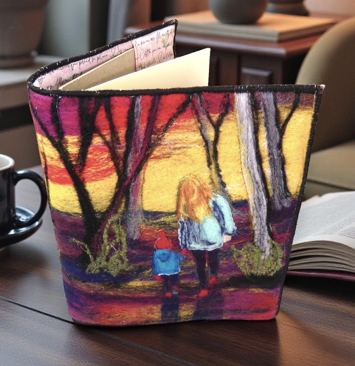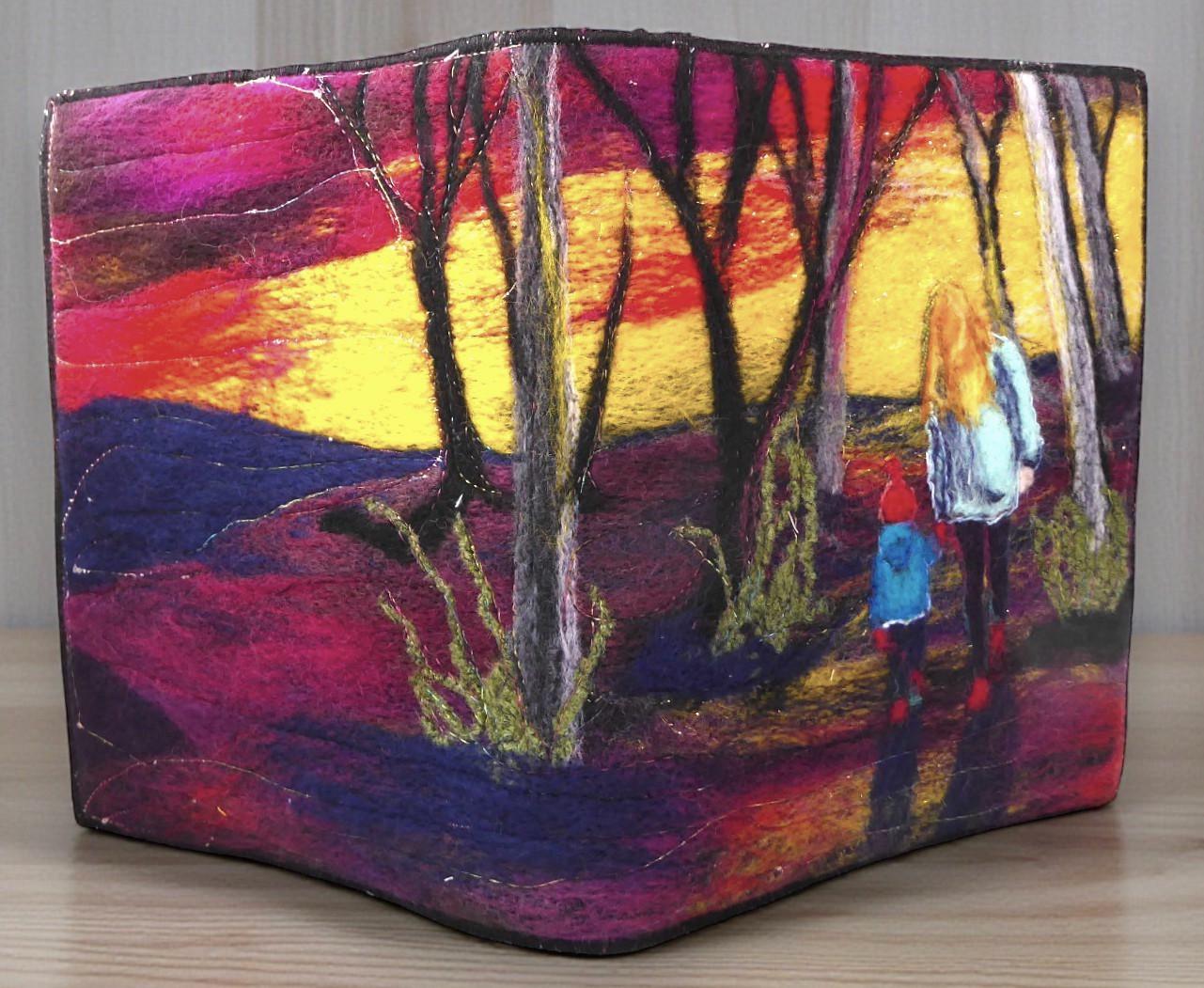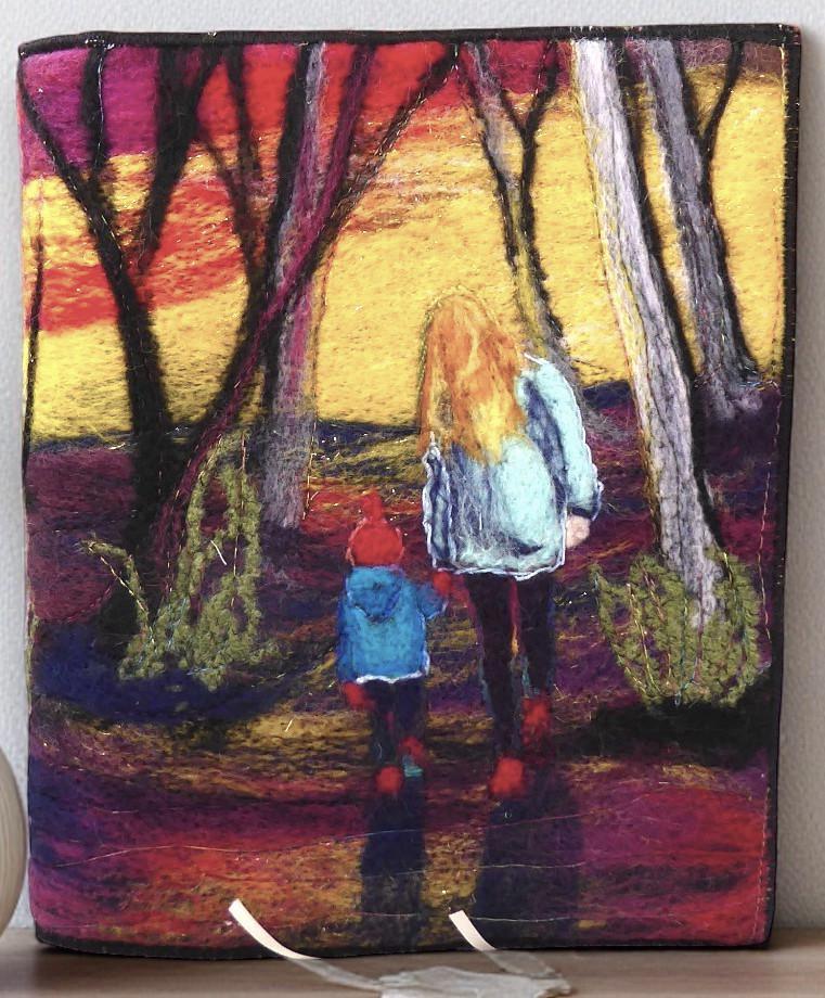 I have needle-felted and embroidered a mother and child walking in the woods.