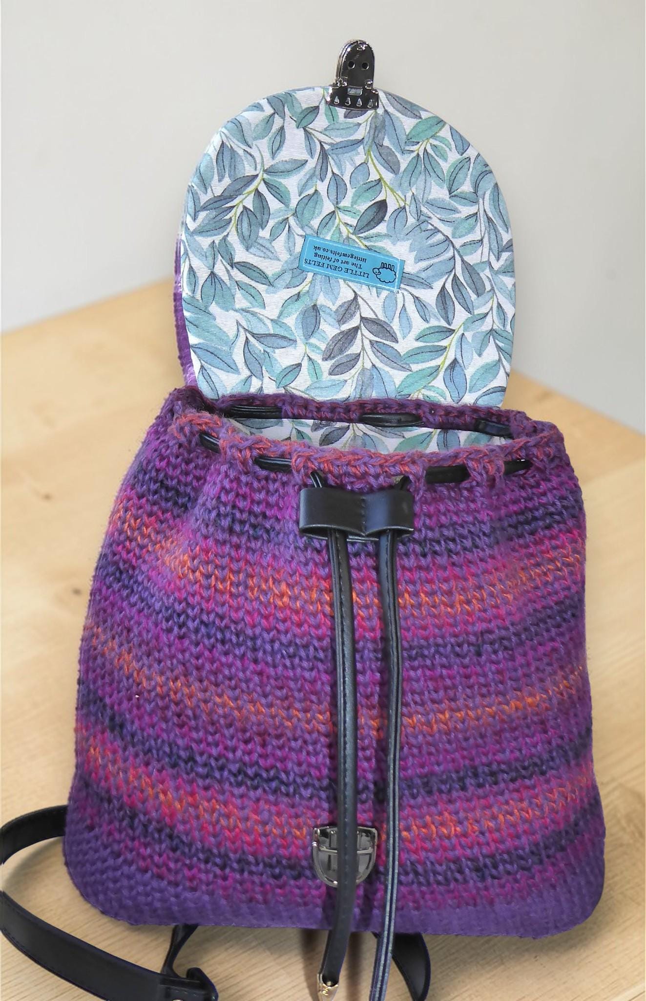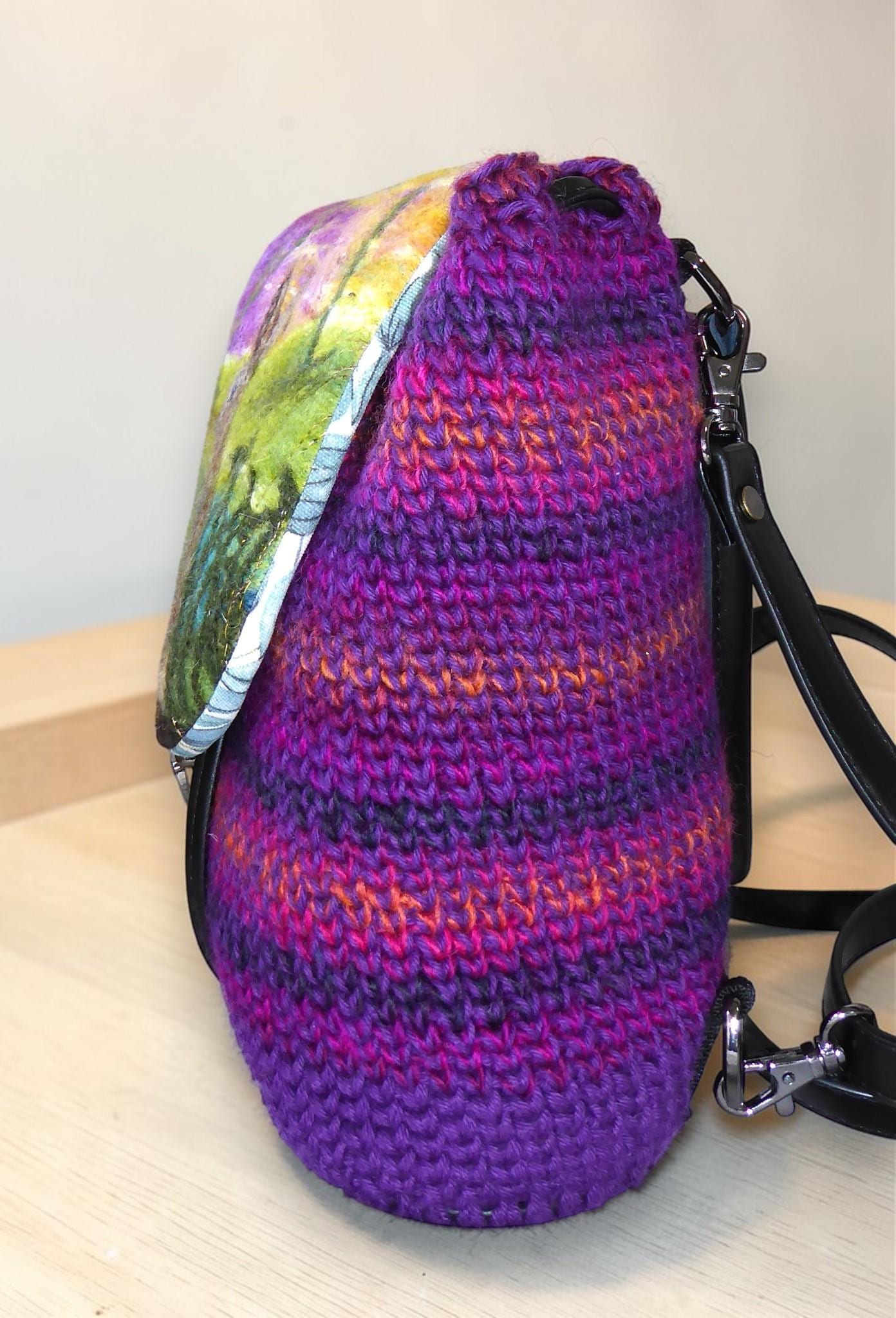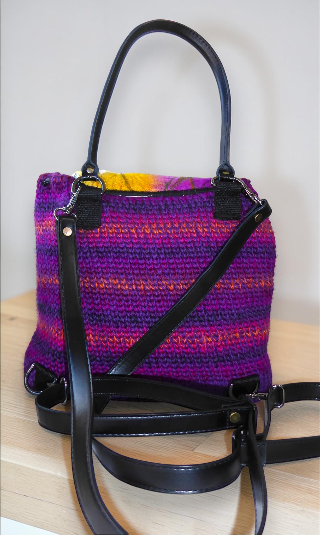 The back-pack has a flap, onto which I have needle-felted flowers. I have then added embroidery to give definition.