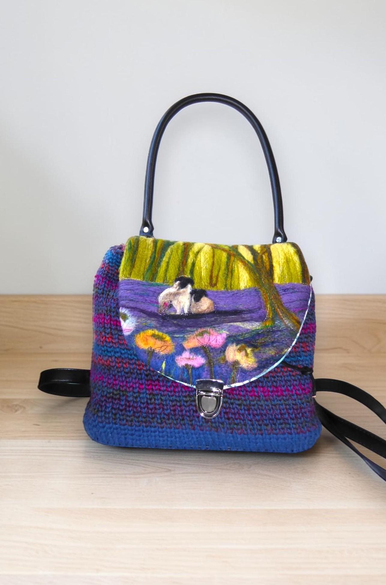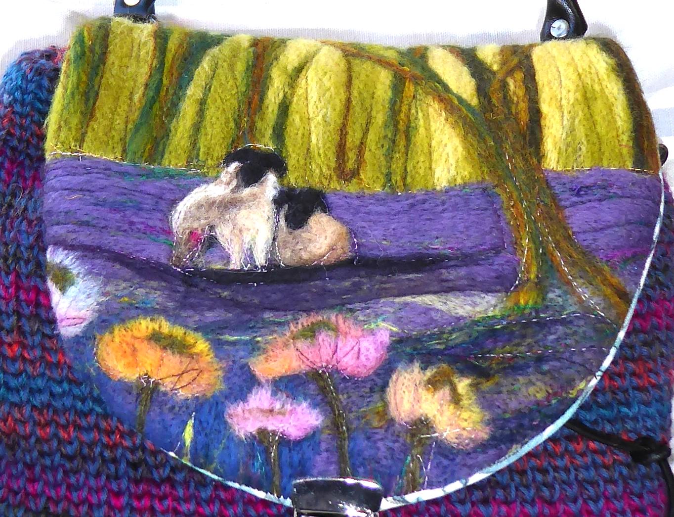 The design on the flap features needle-felted sheep in the woods.